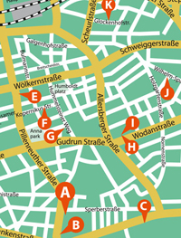 In der Druckausgabe des Info-Folders hat sich ein Fehler auf dem Übersichtsplan eingeschlichen: Der Z-Bau befindet sich in der Nachbarschaft des Bundesamts für Migration fast an der Kreuzung Frankenstr./Allersberger Str. |